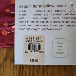 Vtg West Elm Sequin Floral Decorative Pillow Cover - NWT