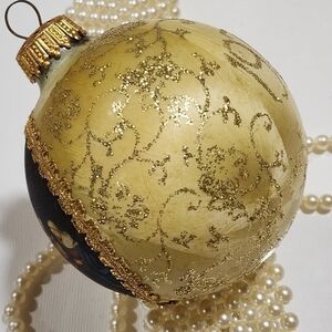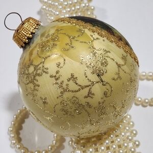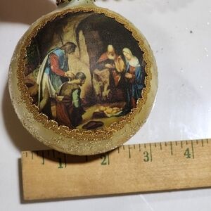 Vtg West Germany Silk Glass hand decorated Nativity ball Christmas ornament