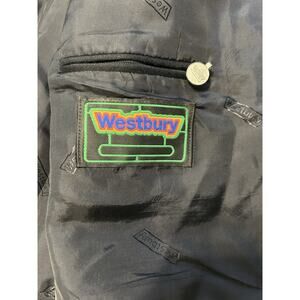 The Vtg Westbury Blazer is a classic and stylish piece for any man's wardrobe. Made from wool with a viscose/rayon lining, this double-breasted blazer features gold buttons and a peak lapel for a sophisticated look. With a chest size of 44, it is suitable for various occasions from formal events to casual meetings, making it a versatile and timeless addition to any collection. Perfect for winter, fall, and spring, this blazer exudes a sense of designer style and nautical charm, ideal for the fashion-forward man.