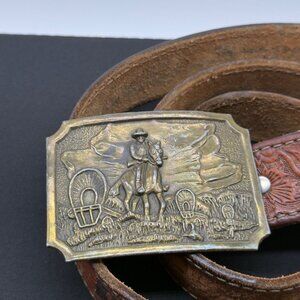Vtg Western Justin Tooled Leather Name Belt "BURT" Covered Wagon Belt Buckle 38"