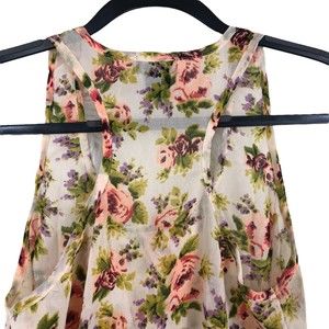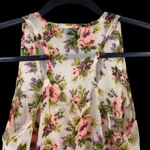 Vtg Wet Seal Sheer Razor Back Tank Yop Pink & Purple Floral Print sz S