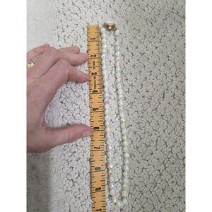 Vtg White Aurora Borealis AB Faceted Glass Bead Necklace Decorative Box Clasp