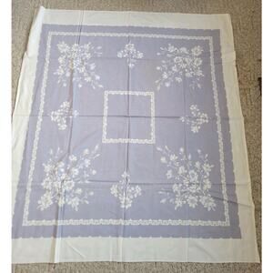 Vtg White Blue Floral Home Decor Kitchen Dining Rectangle Tablecloth 52.5"x46"