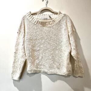 Vtg White Cotton Ramie Blend Drop Shoulder Sweater Boatneck Large Cottagecore