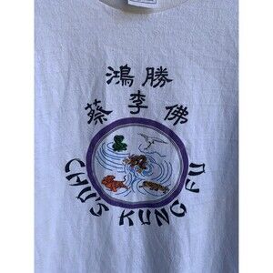 Vtg White Fruit of the Loom cotton t-shirt L with Chinese Kung Fu graphic tee