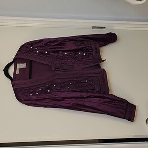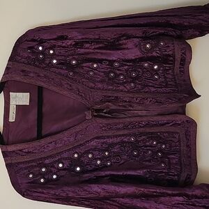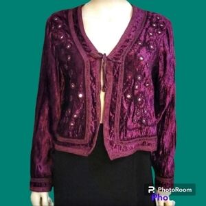 Vtg White STAG 1990s Purple Velour Mirror Sequin Cropped Tie Festival Jacket