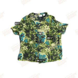 Vtg White Stag Shirt Womens Plus Size 22/24 Green Button Up Floral Flowy Texture