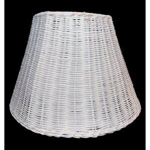 A timeless vintage wicker lamp shade in white, adding a rustic yet elegant aesthetic to any room. Its sturdy construction ensures durability.