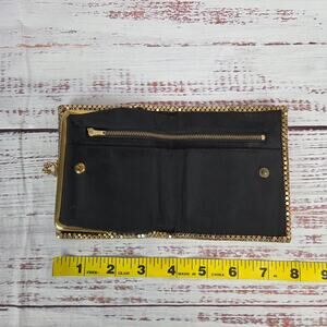 Stunning vintage Whiting & Davis gold tone mesh wallet, a true piece of history from the 1950s. This elegant wallet features a metallic mesh design with a kisslock closure and a convenient zipper. Perfect for adding a touch of vintage glamour to any outfit.
