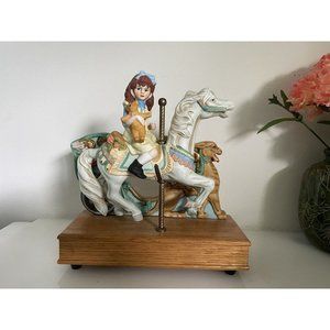 Vtg Willitts Melodies Carousel Waltz #60 Horse Music Box Girl W Teddy Bear Works