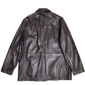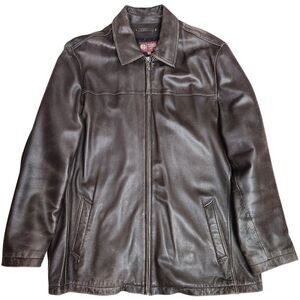 Vtg Wilsons Leather Coat Mens XLT Distressed Dark Brown Preppy Career Collared