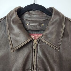 Vintage Wilsons Leather Coat Mens Size XLT ( Extra Large Tall ) Full Zip Up Closure With Two Front Pockets And One Interior Pocket Shell Is Made Of Genuine Leather Distressed Dark Brown Preppy Career Collared Patina Style