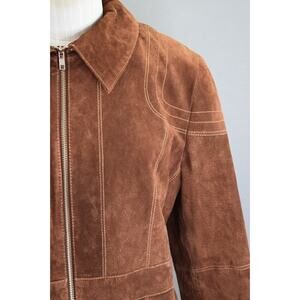 Vtg Wilsons Women Brown Suede Leather Coat Jacket Large 90's Zip Contrast Penny