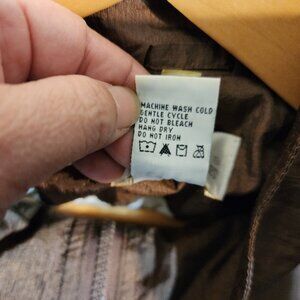 Embrace the blend of functionality and style with the vintage Maggie Barnes windbreaker, a must-have for those who appreciate a retro look with a modern twist. The jacket comes in a plus size 1X, ensuring a comfortable and classic fit for a range of body types. Featuring an animal print patchwork in brown, this windbreaker adds a touch of whimsy to any outfit, be it for casual outings or more formal events. The jacket is thoughtfully designed with a high neck, elastic waist, and elastic long-sleeve cuff, offering both comfort and convenience. It's crafted from a durable nylon outer shell with a cotton and polyester blend lining, insulation, and a machine-washable fabric type, making it a practical choice for any season. Whether you're out for a hike or enjoying a casual day out, this versatile piece is ready to complement your lifestyle. In Excellent Pre-Owned Condition.