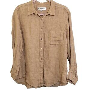 Vtg Windridge Cheryl Nash Womens Top Shirt Size XL Mesh Linen Brown Long Sleeve