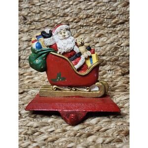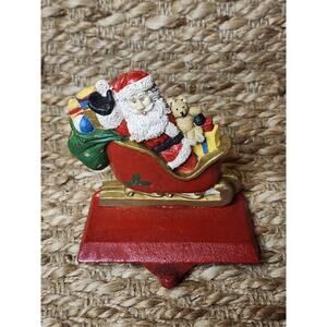 Vtg. Windsor Collection Christmas Stocking Holder Hanger Cast Iron Santa Sleigh