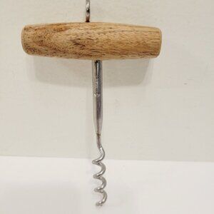 Vtg Wine Bottle Opener Steel Corkscrew Opener Wooden Handle Made in Japan