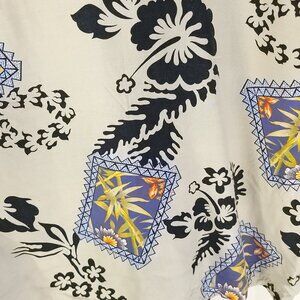 Vtg Wingo Hawaiian Button Front Shirt Men's Med Beige Black Floral Geometric