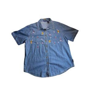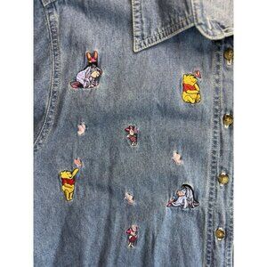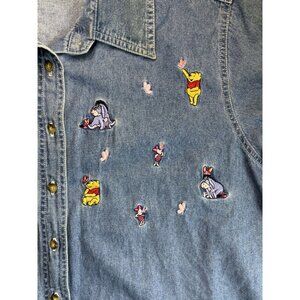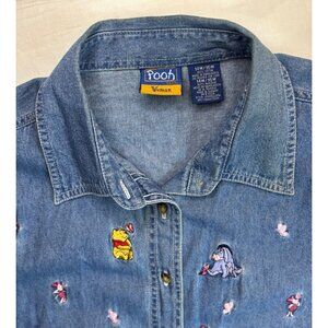 Vtg Winnie The Pooh Button Up Shirt Blue Denim Eeyore Piglet, Size 14-16