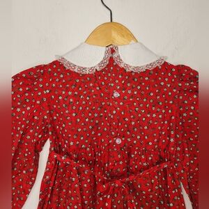 Vtg Winnie The Pooh Dress Girls Size 6XL Smocked Peter Pan Lace Collar Christmas