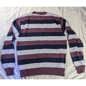 This vintage Winona Knits sweater is a classic addition to any wardrobe. Made with 70% Shetland wool and 30% cotton, it features a tight-knit striped pattern in shades of grey, red, and blue. The crew neck and long sleeves make it suitable for a range of occasions, from casual outings to formal events. The sweater is machine washable and has a breathable design, ensuring comfort and ease of care. Its American, elegant, 80s, 90s, retro, preppy, and vintage theme makes it a versatile piece that can be personalized to suit any style. Available in size L, this pullover is perfect for men who value quality and timeless fashion.