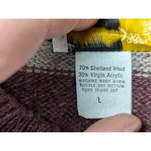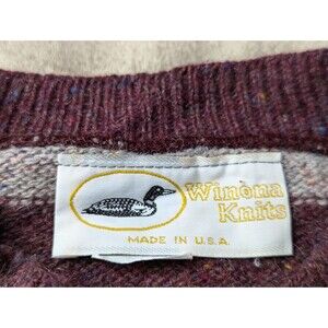Vtg Winona Knits 70% Shetland Wool Grey/Red/Blue Made in USA Sweater SZ: L