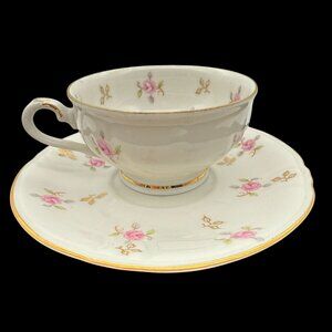 Vtg Winterling Bavaria Germany Floral Saucer & Teacup Set Pink Roses Gold Trim
