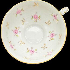 Enhance your tea time with this vintage Winterling Bavaria teacup and saucer set. Featuring delicate pink roses and elegant gold trim, it adds charm and sophistication to your collection.