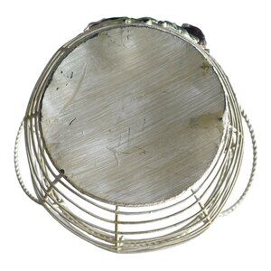 Vtg Wire Basket with Hand-Painted Ceramic Roses – Red, Blue, Purple Flowers