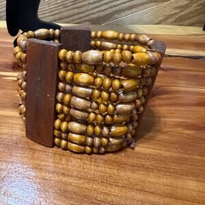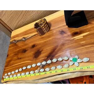 Vtg Wired Cowrie Shell Necklace & Wood Beaded Bracelet Hawaiian Aloha Lei Long