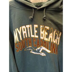 Vintage 90s Y2K Wiseguy Green Myrtle Beach South Carolina Streetwear Gorpcore Grunge Skater Hip Hop Workwear Oversized Destination Spell Out Hoodie with Drawstring and Logo on Front & Left Arm