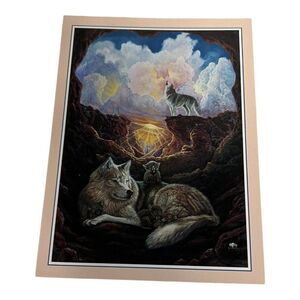 Vtg Wolf Set Of 3 Cards Postcards Colorful Frameable Native American Southwest