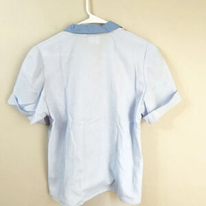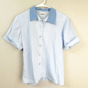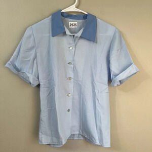 Vtg Women Blue Romper And Blouse Set Ruffle Short Sleeve Top Sleeveless Overalls