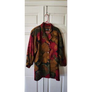 Vtg Women Escada by Margaretha Ley Red Brown Flower Floral Wool Coat Size 36/6
