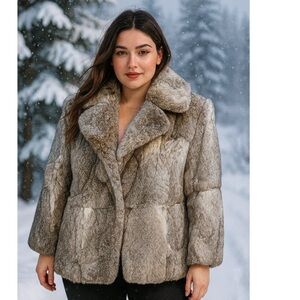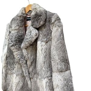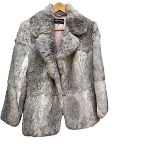 The Vintage 70s 80s Split End Ltd Rabbit Fur Coat with a belted leather tie is a stylish and unique addition to any wardrobe. Made from 100% rabbit fur with a polyester lining, this short jacket features a tie closure and pockets for added convenience. Handcrafted in France, this multicolor coat is perfect for various occasions including parties, casual outings, and formal events. With its wrap trench coat style and regular fit, this jacket is sure to add a touch of glamour and sophistication to any outfit.