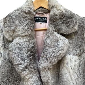 Vtg Women Split End Rabbit Fur Coat Belted Leather Tie France lapin Mob Wife L