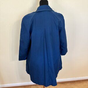 Vtg Womens 1970s Jacket Blue Button Up Coat 14 XL Lined Atkins Hong Kong Pockets