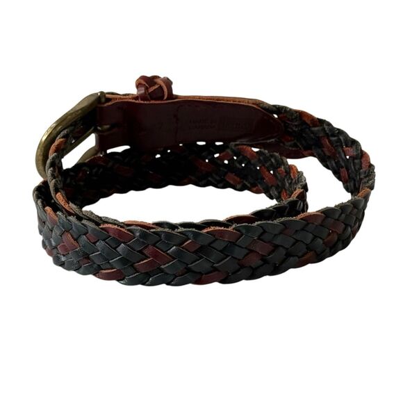 Vtg Womens Belt 100% Leather Woven Braided Adjustable Size M Multicolor Boho