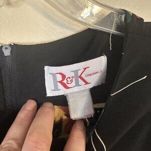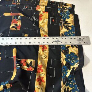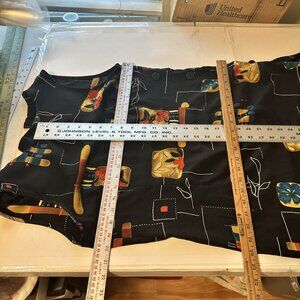 Vtg Womens Black Midi Dress Abstract Floral Print Shift 90s Sleeveless Rayon