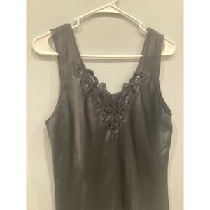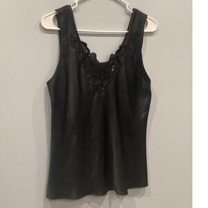 Vtg Womens Camisole Small Cami Tank Top Black Beaded Lace Sequin Y2K Whimsigoth