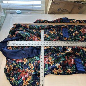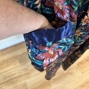 Vtg Womens Floral Satin Robe Belt Navy Blue Medium Pockets Tie Long