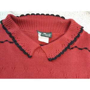 Vtg Womens Grandpa Sweater Sz Small Knit Polo 3D Red Black Blue 90s Fair Isle