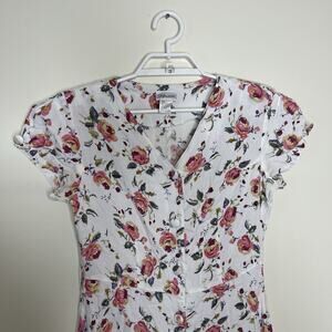 Vtg Women's Light Floral Rose Button Up Dress 90s Cottage Romantic Coquette- 10.
