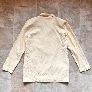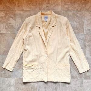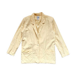 Vtg Womens Linen Blend Blazer Butter Yellow Long Coastal European Quiet Luxury
