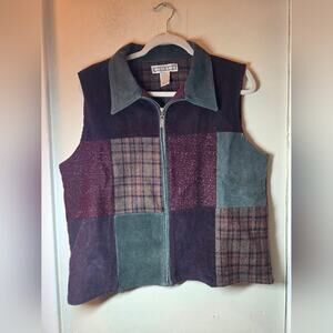 Vtg Womens Patchwork Leather & Wool Vest Green & Purple Size XL Boho Hippie Cottagecore Fairy Whimsy Goth Witchy Romantic Grunge Fun