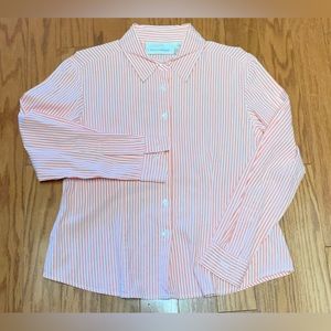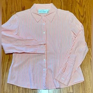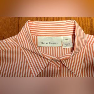 Vtg Women’s Petite Medium Button Front Orange White Striped Susan Bristol Shirt