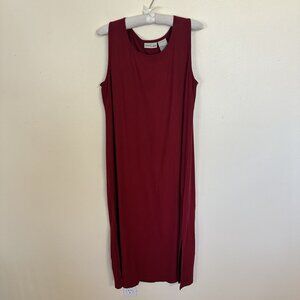 Vtg Womens Red Linen Maxi Dress Shift Medium 90s Sleeveless Studio Ease Petite