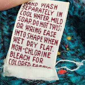 Vtg Womens Sweater XL Confetti Teal Lady Van Heusen Cable Knit Crewneck 70s 80s