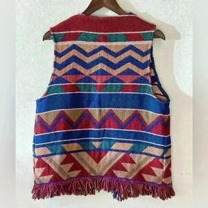 Vtg Women’s Sz M/L 80s Blanket Vest Southwestern Rodeo Boho Tapestry Fringe