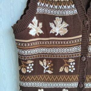 Vtg Womens XL Fall Autumn Thanksgiving Leaves Button Down Long Line Sweater Vest